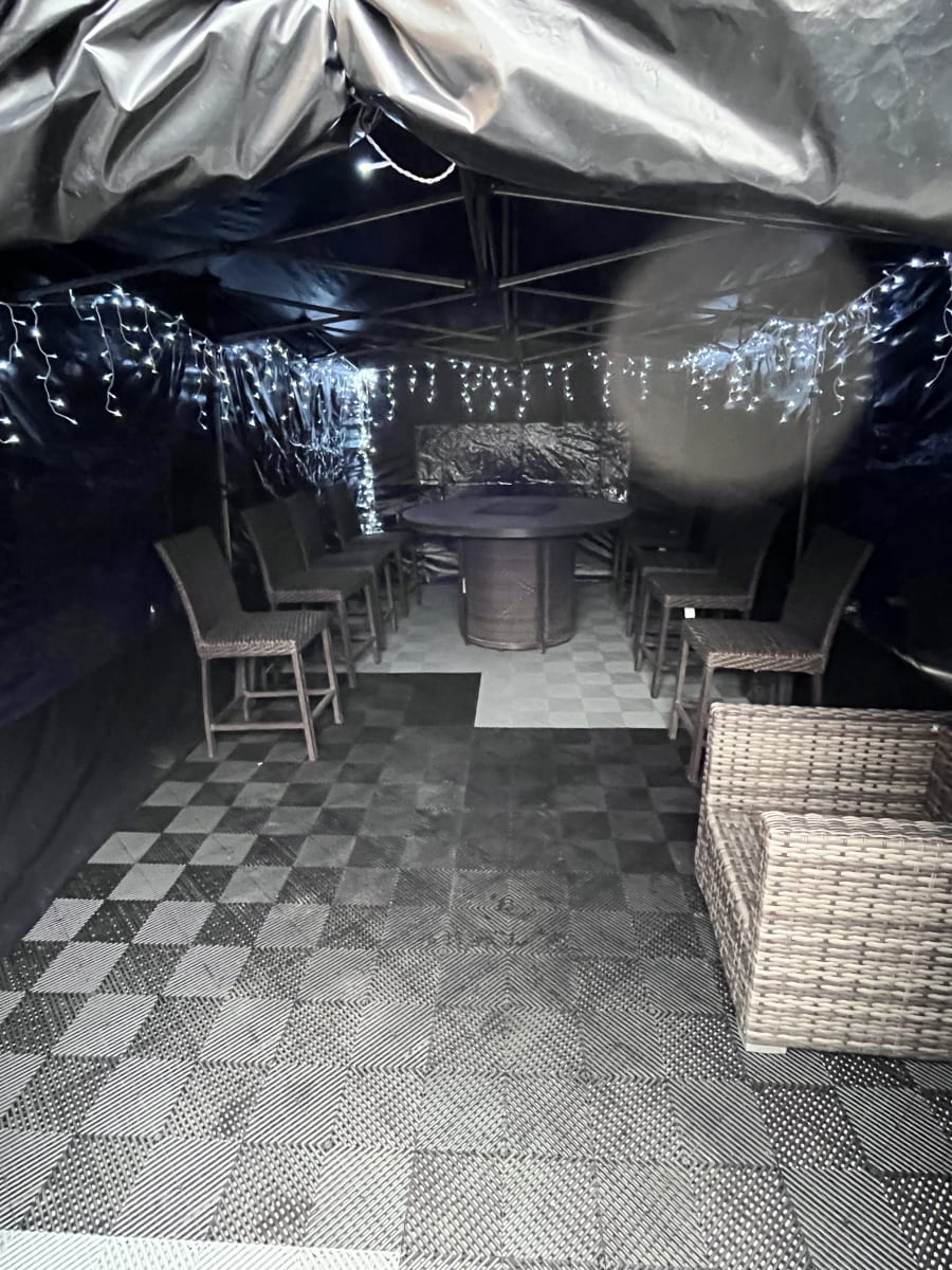 - roll up windows for some extra lighting or roll down for privacy or to have dark and decorate yourself