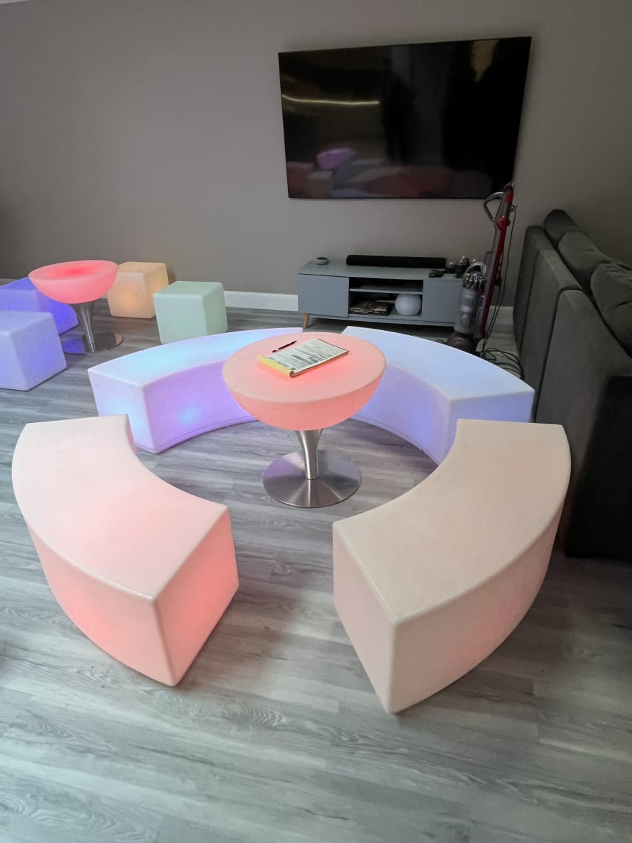 These 4 led curved benches and cocktail table can go alongside any of our other furniture or numbers Led Furniture Led Numbers led furniture is best supplied with our Gazebos