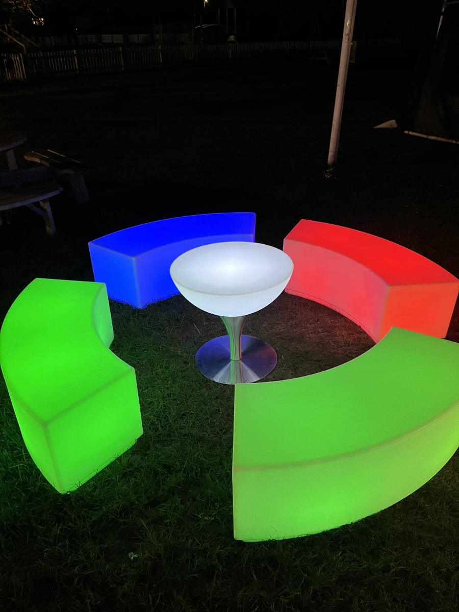 These 4 led curved benches and cocktail table can go alongside any of our other furniture or numbers Led Furniture Led Numbers led furniture is best supplied with our Gazebos