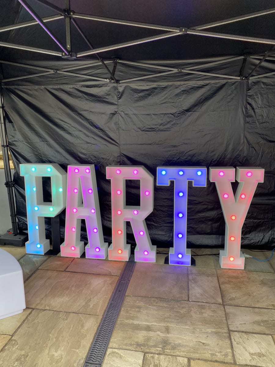 Make your next event memorable with our show-stopping 4ft multicoloured Party LED letters . Our friendly team is committed to delivering top-notch service and creating the perfect party atmosphere for your special day. Contact us now to reserve your date and let’s get the party started! π