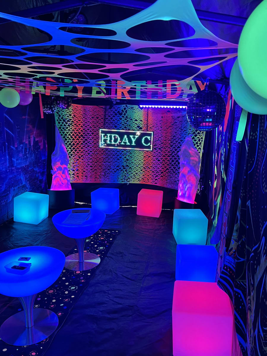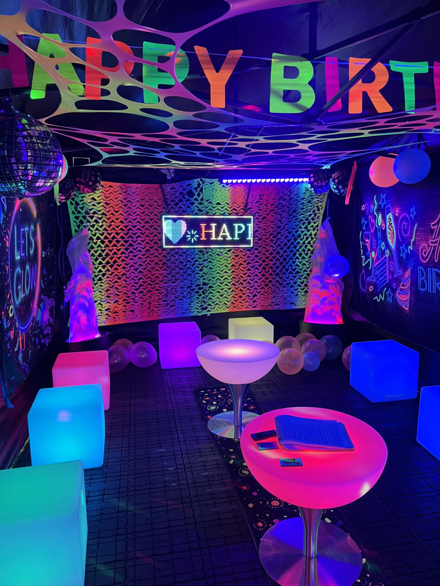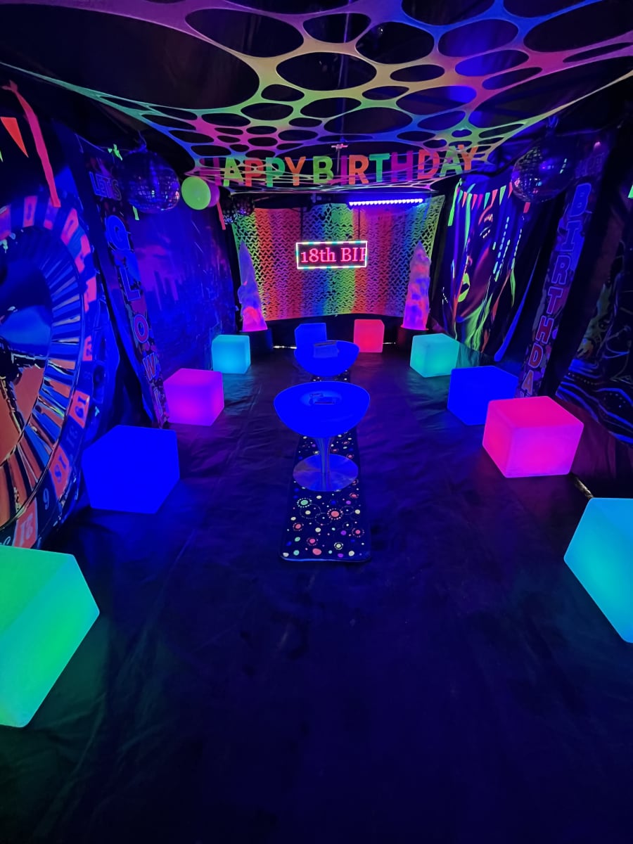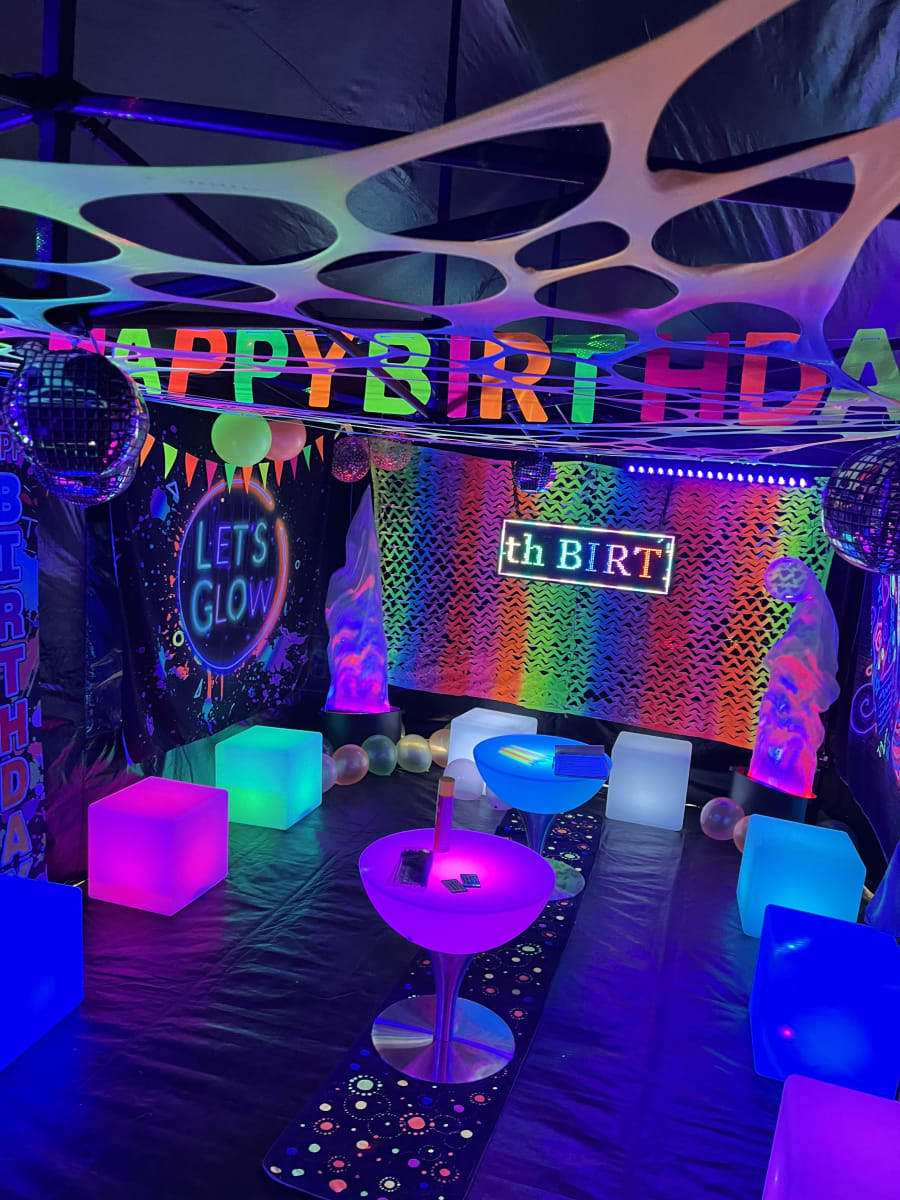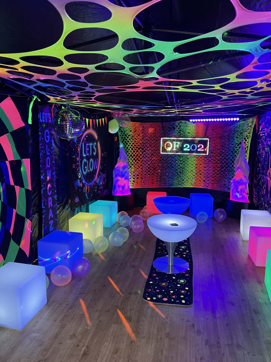 - UV lighting, balloons and decorations for glow effects. 💡