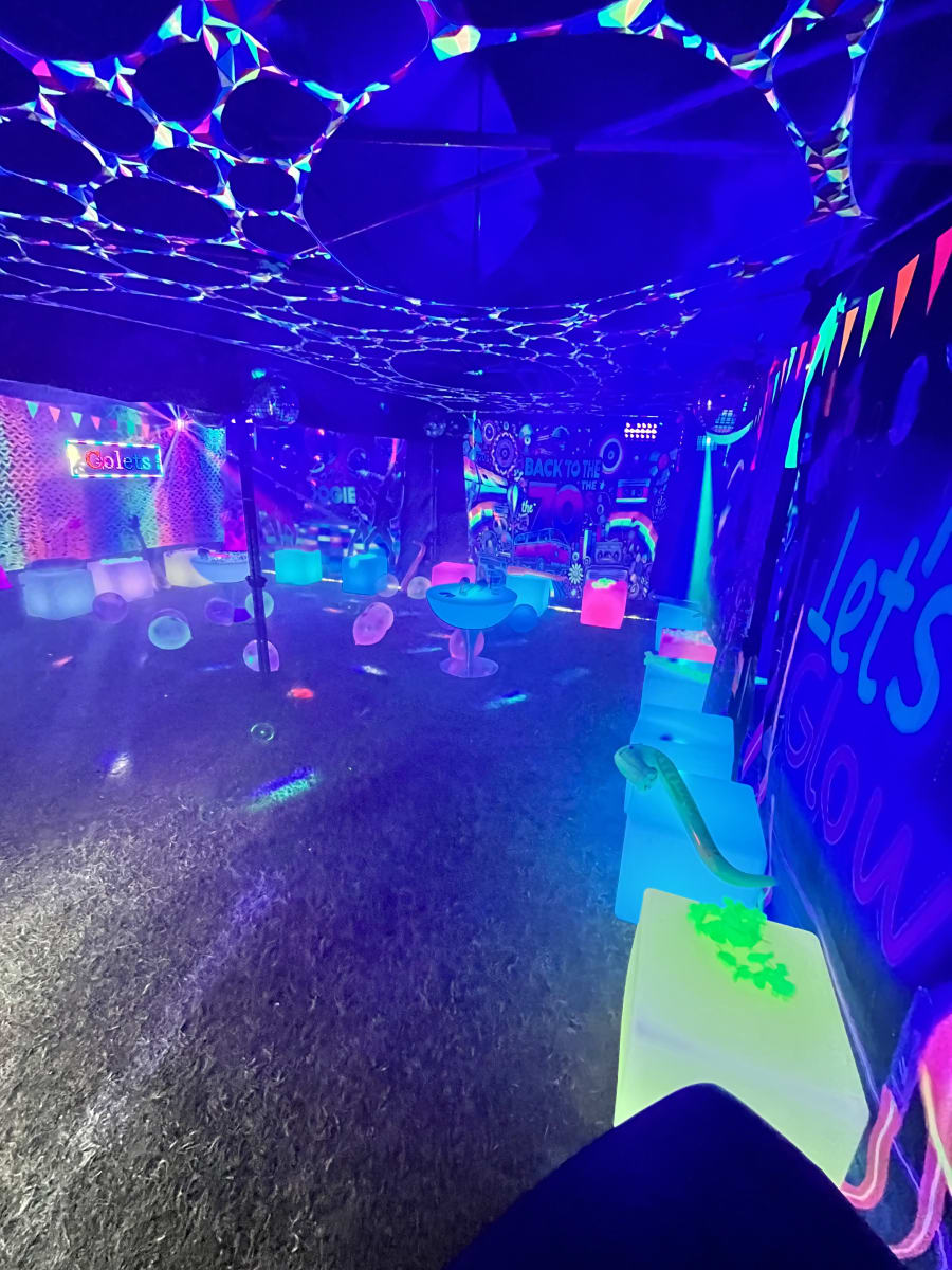Perfect for birthdays, corporate after-parties, school leavers, and private raves. This all-in-one tent delivers immersive UV lighting, loud sound, and striking visuals to host for guests in true nightclub style. 🔊✨