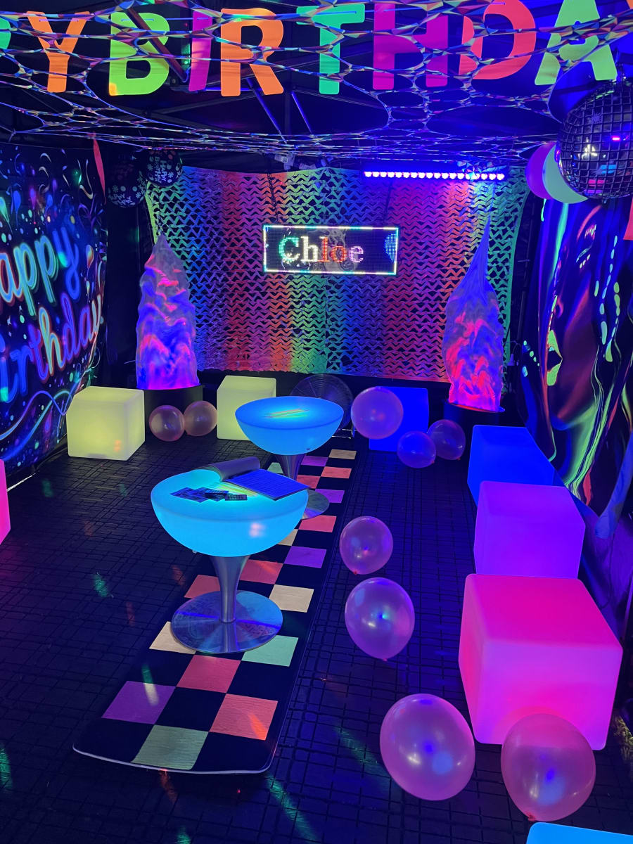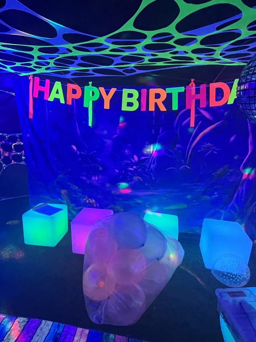 - UV lighting, balloons and decorations for glow effects. 💡