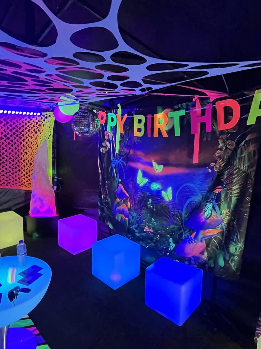 Transform any space into a UV nightclub with the 6x3m uv party tent