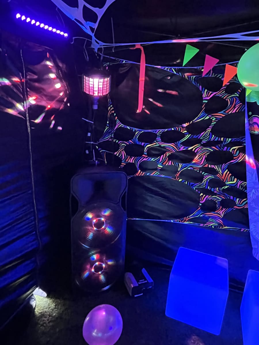 Perfect for birthdays, corporate after-parties, school leavers, and private raves. This all-in-one tent delivers immersive UV lighting, loud sound, and striking visuals to host for guests in true nightclub style. 🔊✨
