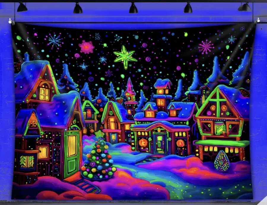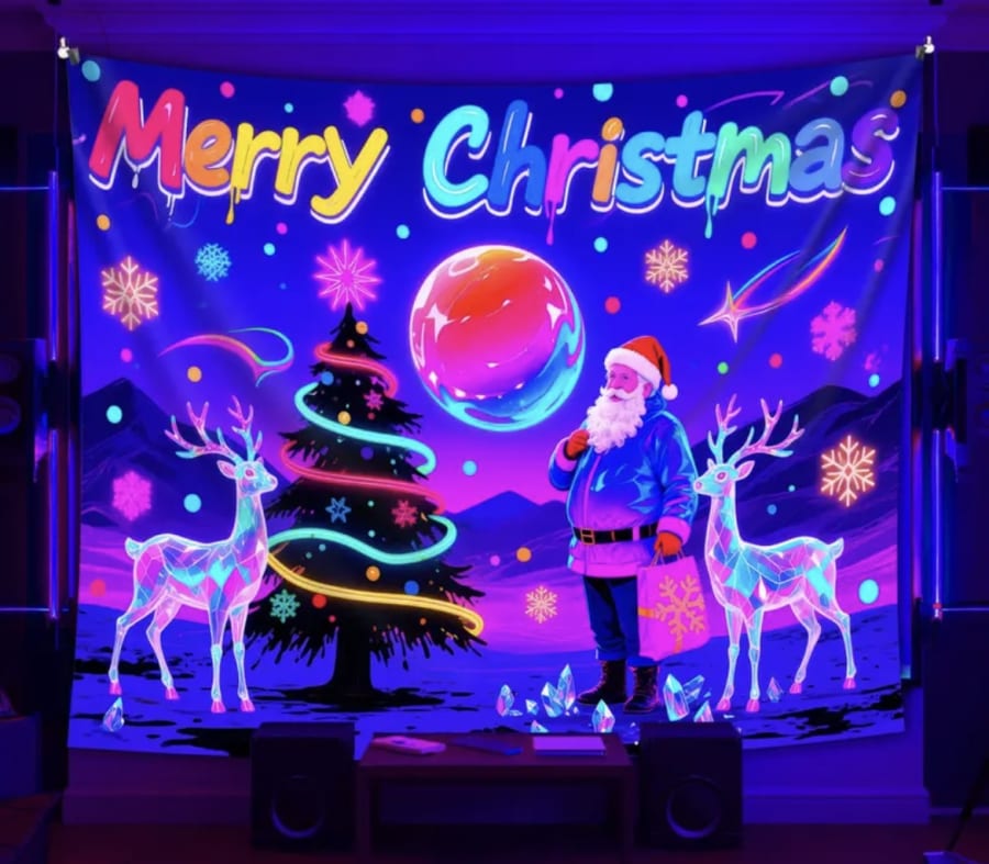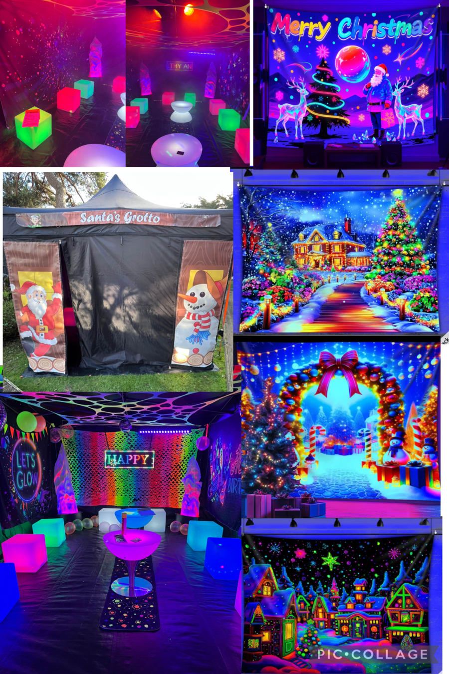 - 4 UV Christmas backdrops — high-impact visuals under UV light.